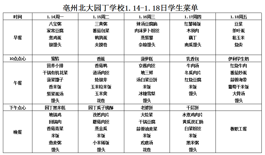 1.14-1.18日學(xué)生菜單