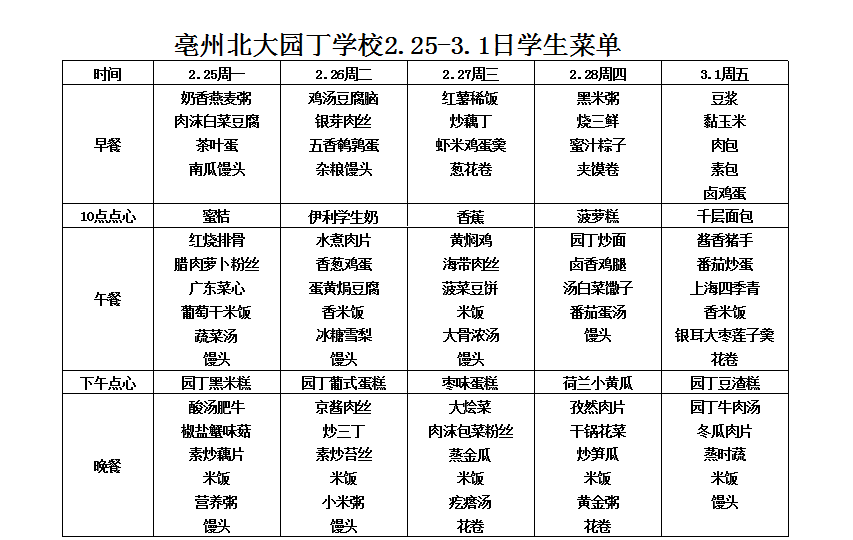 亳州園丁學校3.9---3.13日菜單