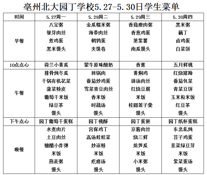 5.27-5.30日學(xué)生菜單