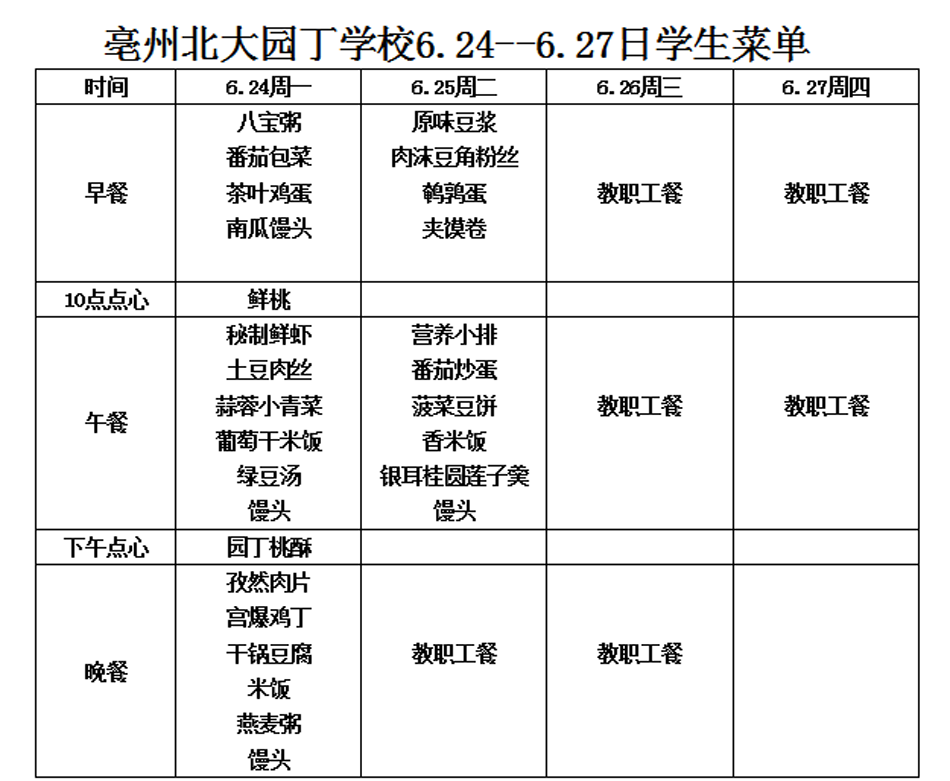 6.24--6.27日學(xué)生菜單