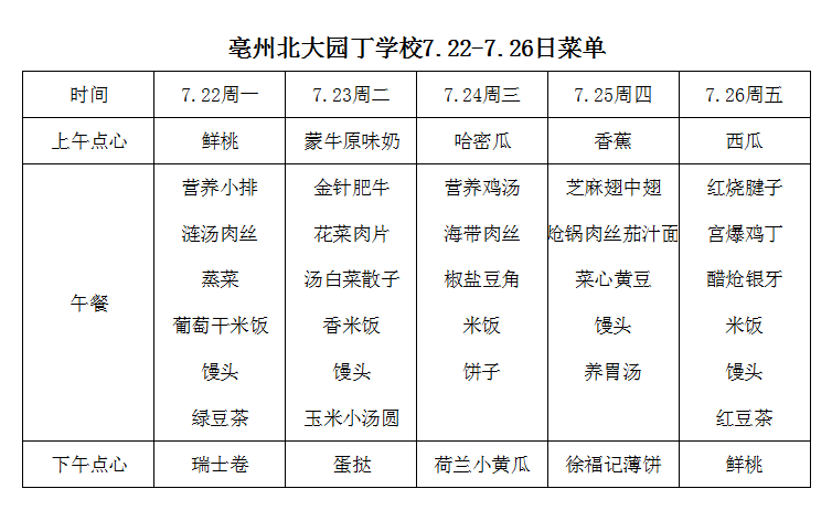 7.22-7.26日學(xué)生菜單