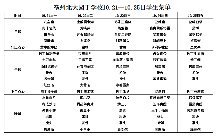10.21--10.25日學(xué)生菜單