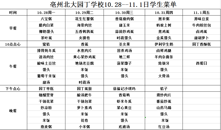 10.28--11.1日學(xué)生菜單