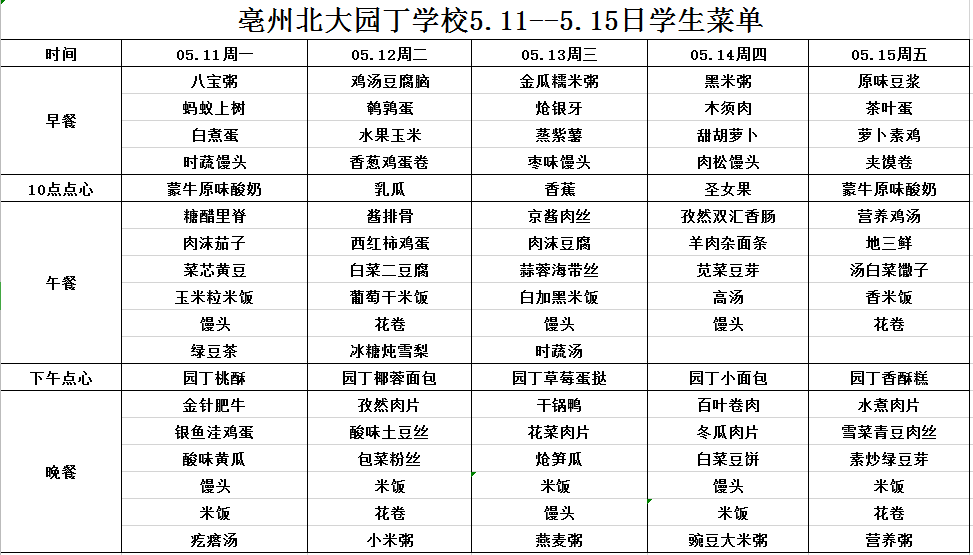 5.11--5.15日學(xué)生菜單