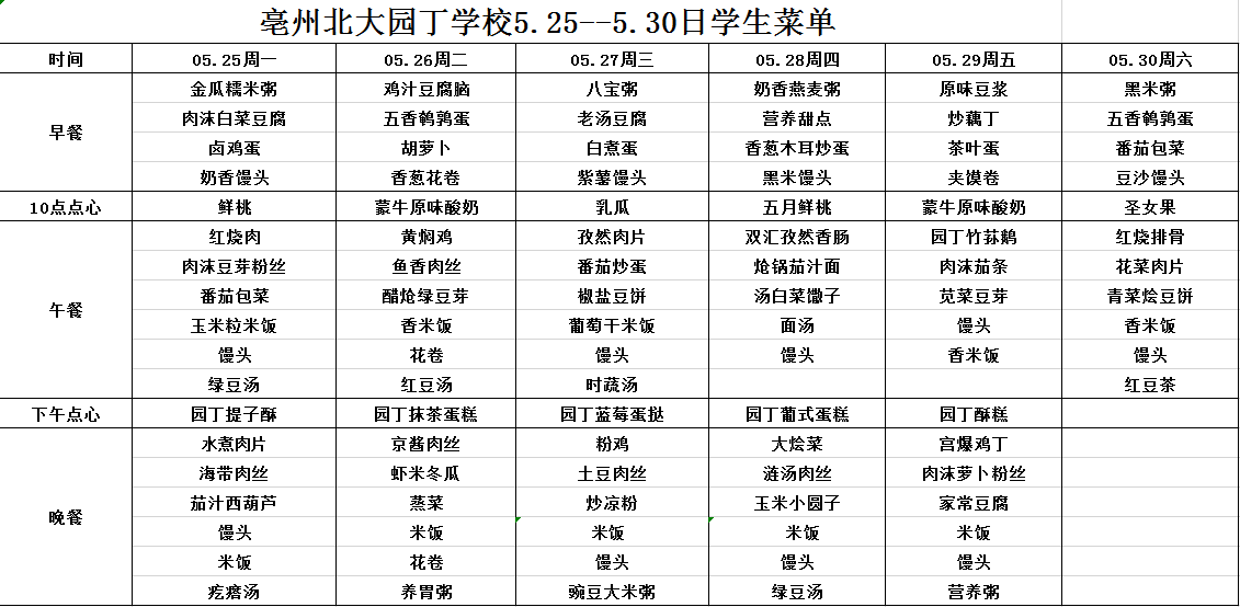 5.25--5.30日學生菜單