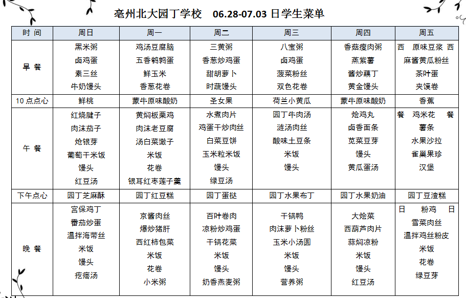 06.28-07.03日學(xué)生菜單