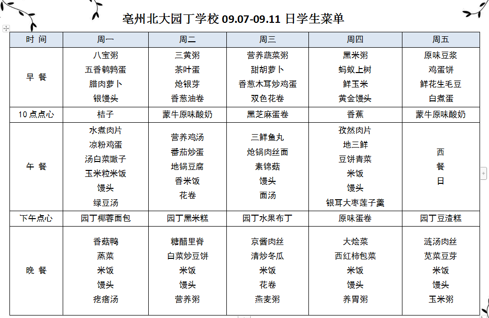 09.07--09.11日學(xué)生菜單