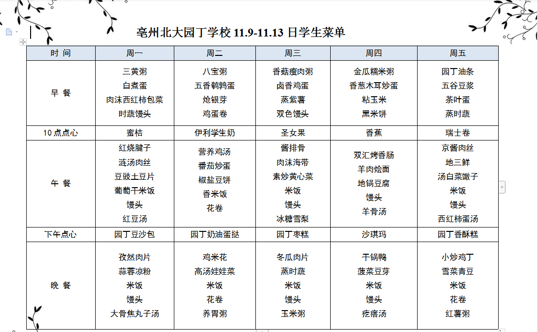 亳州園丁學(xué)校3.9---3.13日菜單