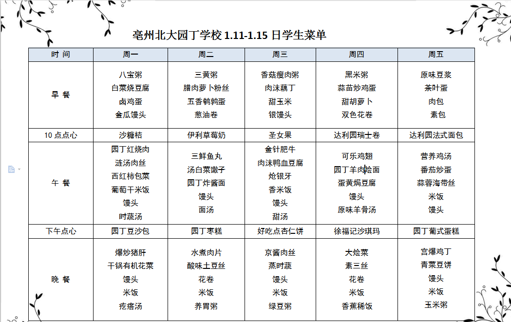 亳州園丁學(xué)校3.9---3.13日菜單