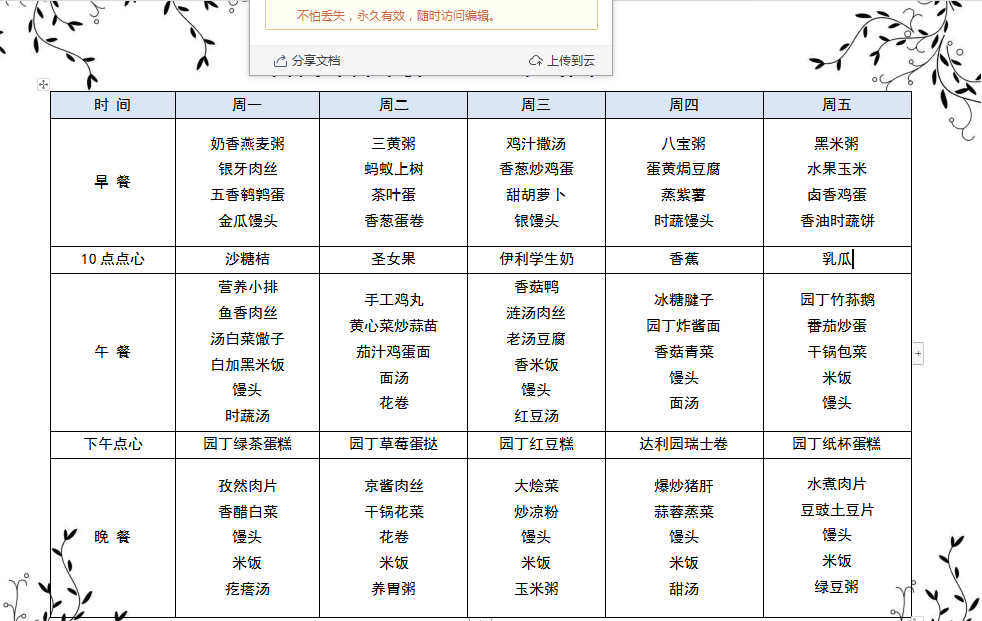 3.8--3.12日學(xué)生菜單