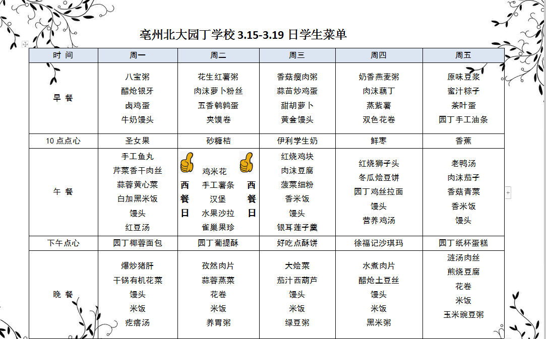 亳州園丁學(xué)校3.9---3.13日菜單