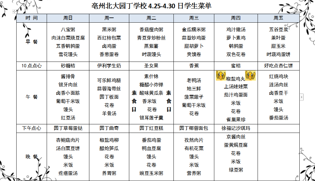 4.25--4.30日學(xué)生菜單