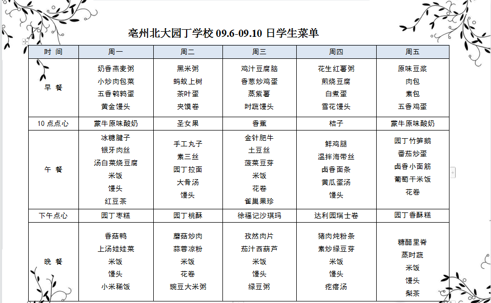 9.6-9.10日學(xué)生菜單