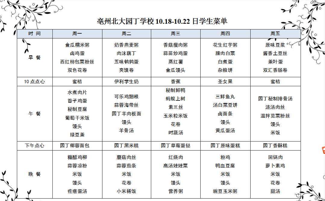 10.18-10.22日學(xué)生菜單