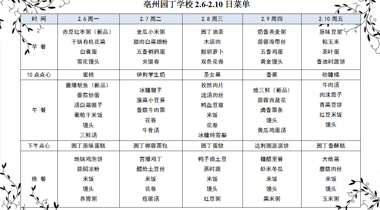 亳州園丁學(xué)校2.13-2.17日菜單..