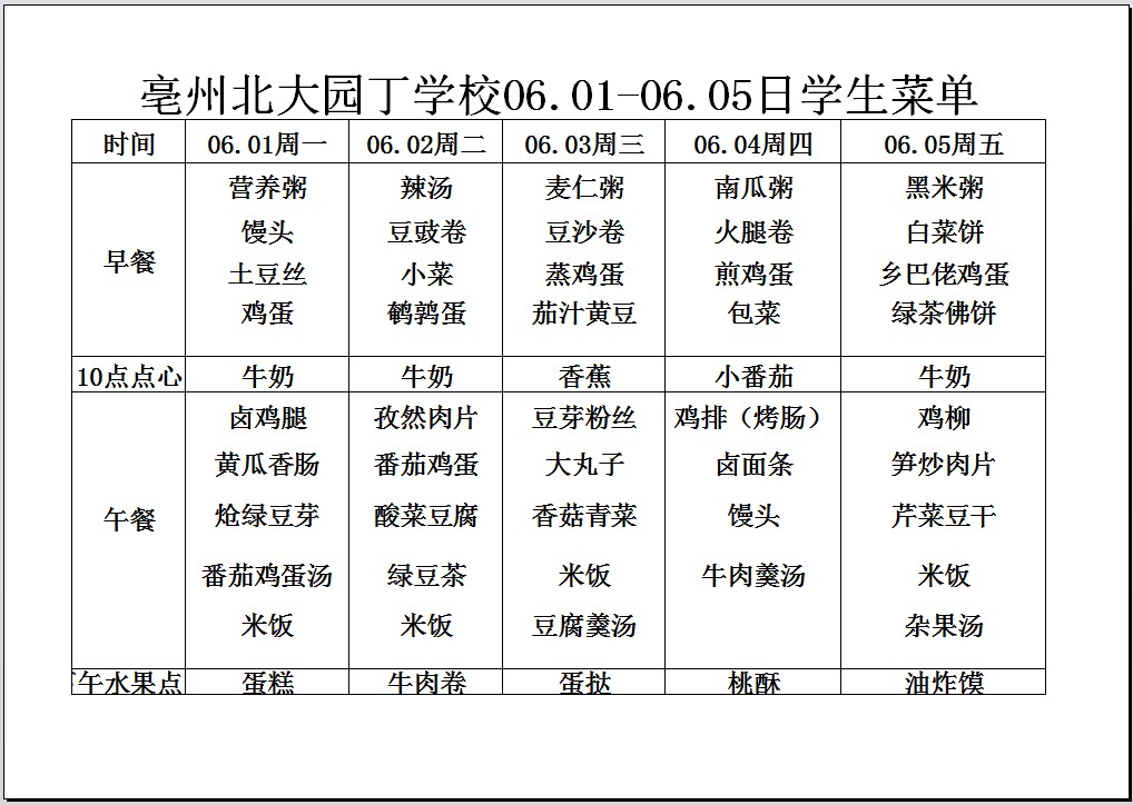 亳州園丁學校3.4--3.6日菜單