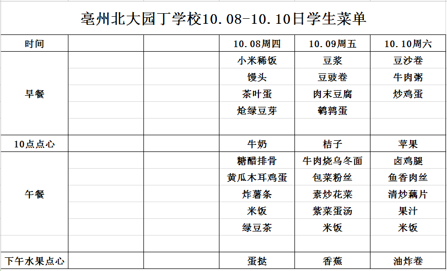 亳州園丁學校3.4--3.6日菜單