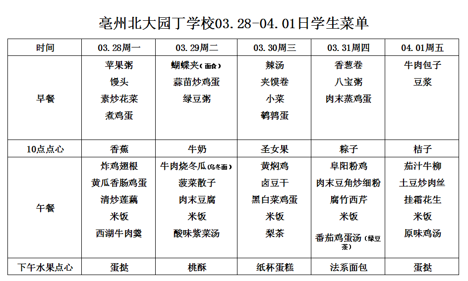 亳州園丁學校3.4--3.6日菜單