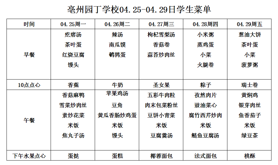 04.25-04.28日學(xué)生菜單