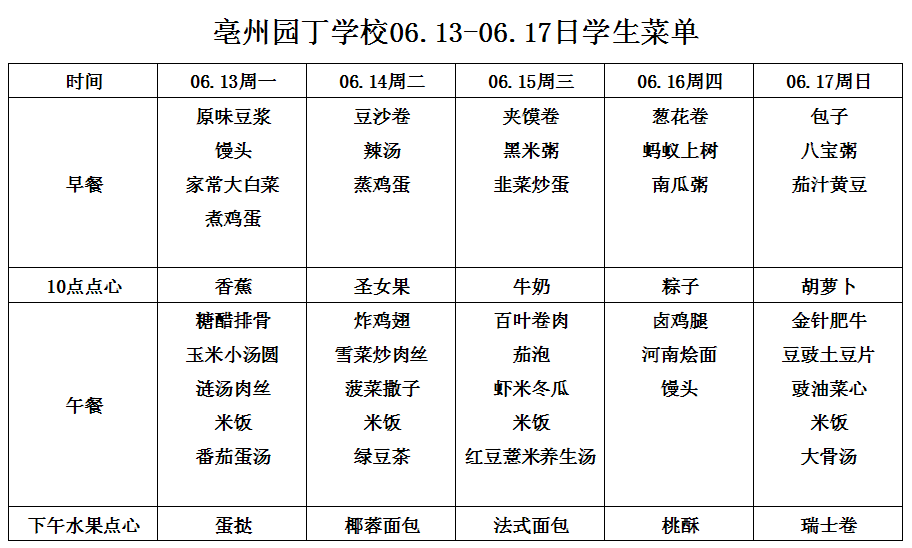 06.13-06.17日學(xué)生菜單