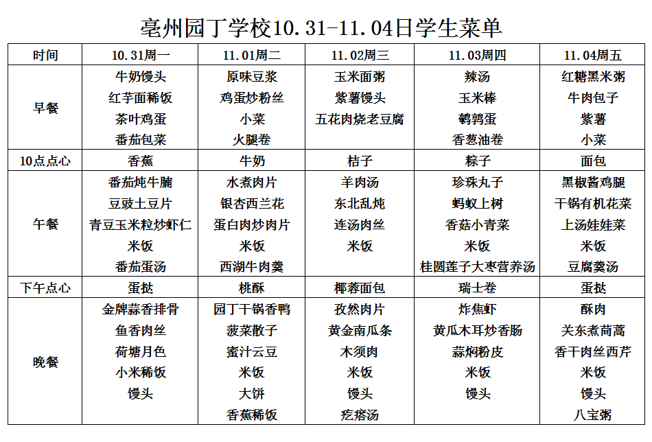 10.31-11.04日學(xué)生菜單