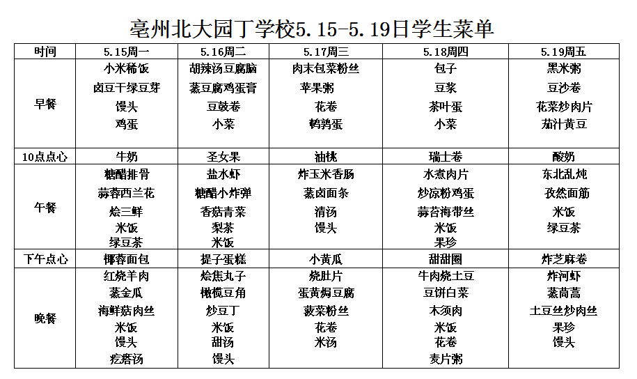 亳州園丁學校3.9---3.13日菜單