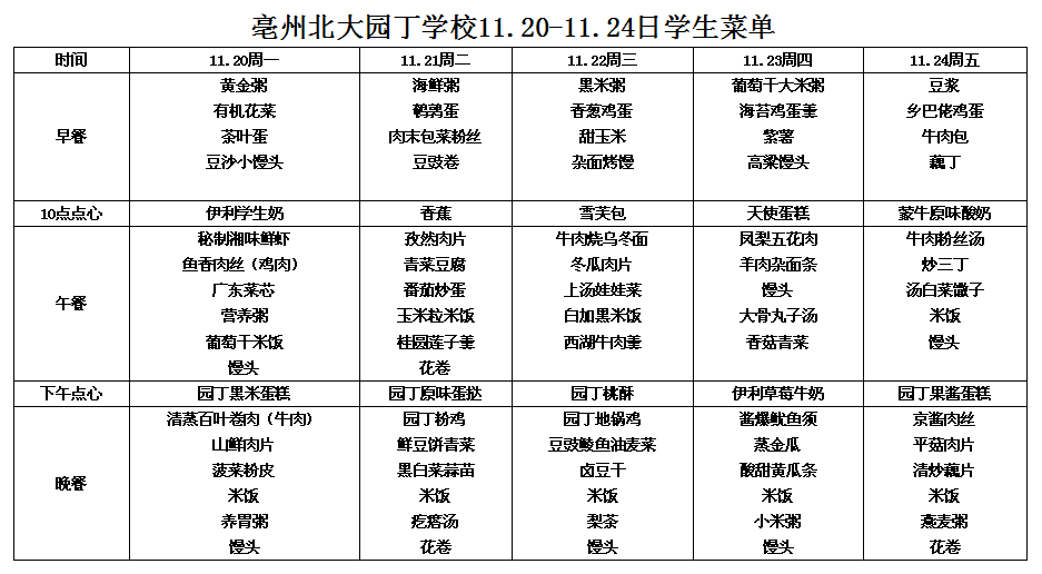 11.20-11.24日學(xué)生菜單