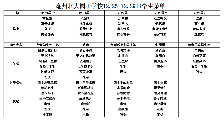 12.25-12.29日學(xué)生菜單