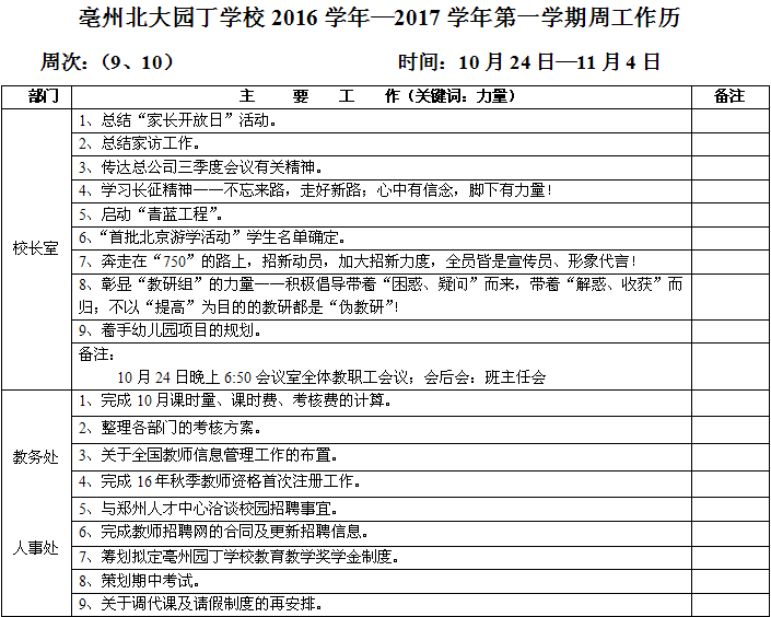 10.24—11.04學(xué)校周工作日歷