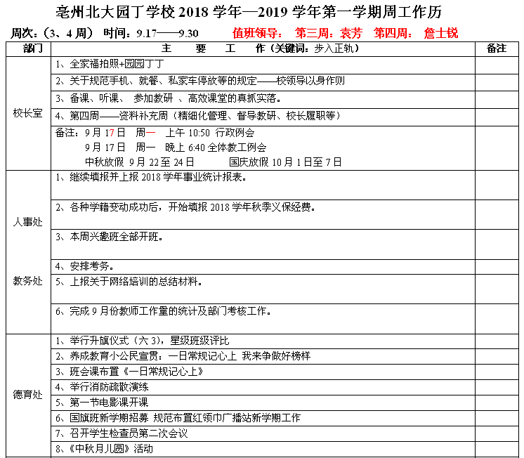 09.17—09.30學(xué)校周工作日歷