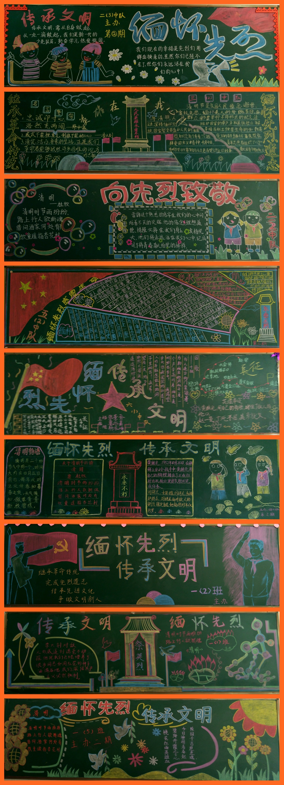 為了緬懷先烈豐功偉績(jī),激發(fā)同學(xué)們銘記歷史,告慰烈士英靈,繼承先烈遺志,弘揚(yáng)民族精神, 4月11日下午,亳州園丁學(xué)校開展了以“緬懷先烈 傳承文明”為主題的黑板報(bào)評(píng)比活動(dòng)。