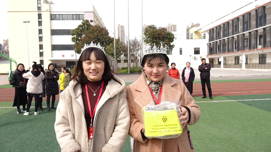 比賽結束后,詹士銳校長為在比賽中獲得冠亞軍的女老師佩戴上了心儀的“鳳冠”。校辦公室也為所有女教師準備了豐厚的節(jié)日“戰(zhàn)利品”,每一位收到“戰(zhàn)利品”的女教師臉上都洋溢著幸福的笑容。