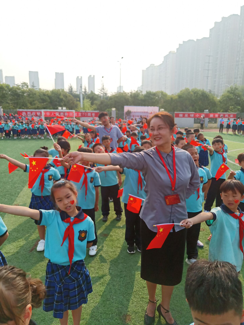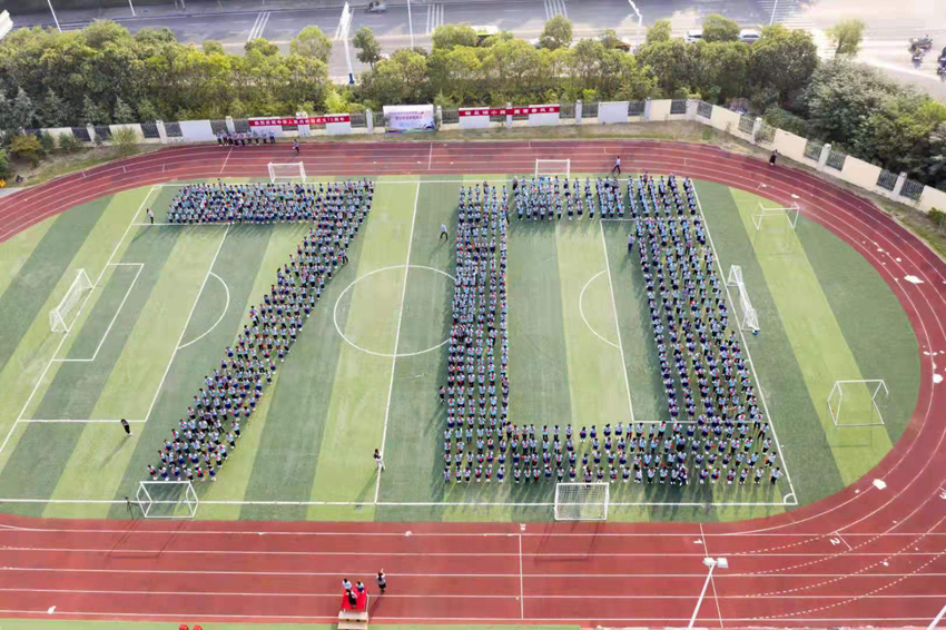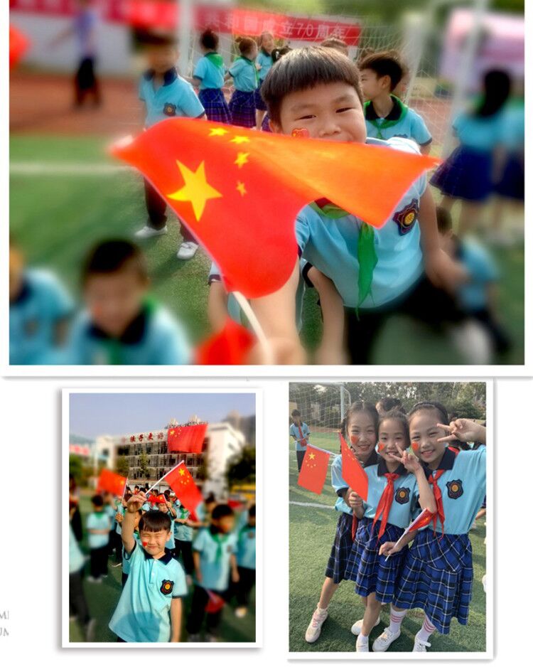 看,陣容整齊的北大園丁學(xué)子以“70”字樣的方陣,手持國旗,精神抖擻,北大園丁藍校服,國旗紅領(lǐng)巾,迎著早晨的陽光,映射出未來的希望。優(yōu)美旋律里,稚嫩童聲中,洋溢著對祖國的愛,對祖國的感恩,對祖國的祝福。