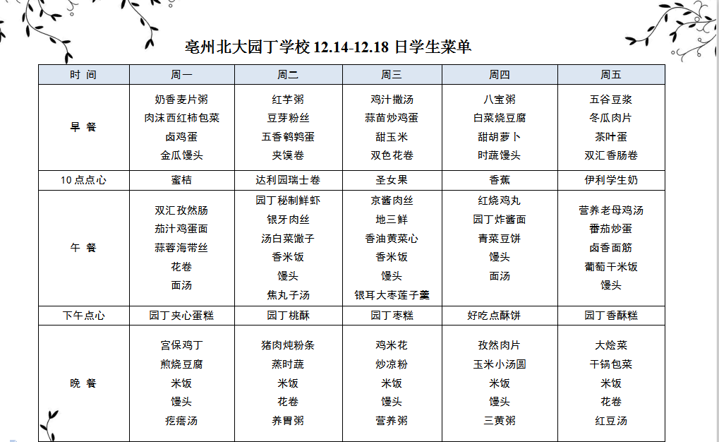 亳州園丁學(xué)校3.9---3.13日菜單