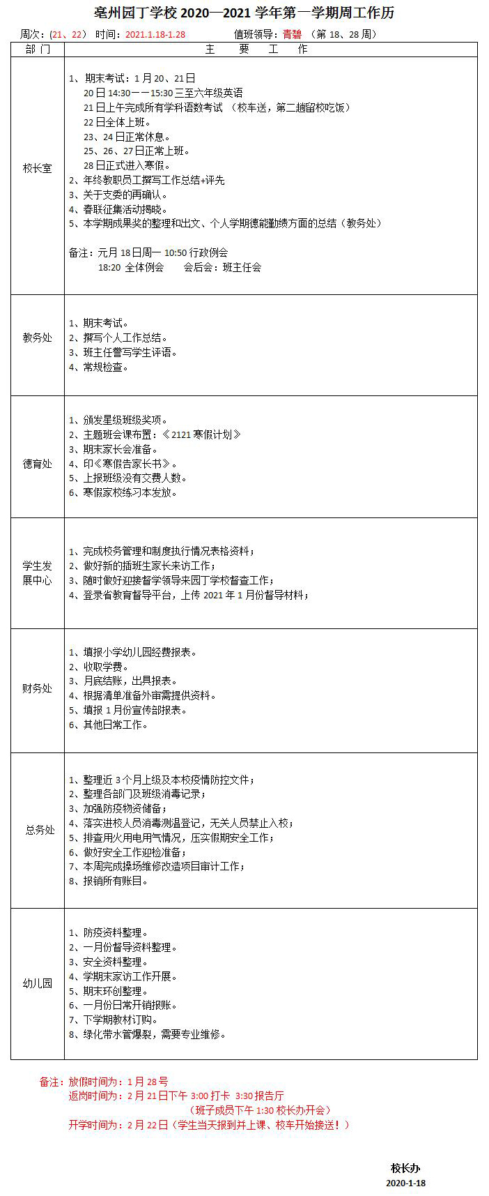 校工作日歷