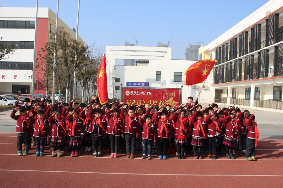 12月29日上午,陽光明媚,亳州北大園丁學校的操場上隊旗高高飄揚,原來學校正在舉行莊嚴而又隆重的新少先隊員入隊儀式。