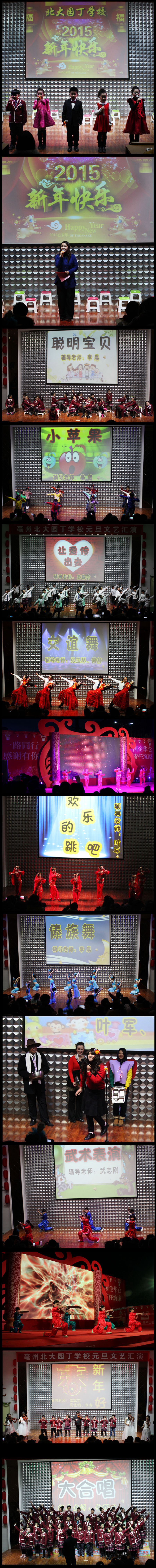 12月31日,亳州北大園丁學(xué)校報告廳里熱鬧非凡,各個角落都洋溢著新年的快樂,這是因為“亳州北大園丁學(xué)校2015年慶元旦文藝匯演”在此隆重舉行。幾百名師生和近千名家長共同觀看了文藝演出。