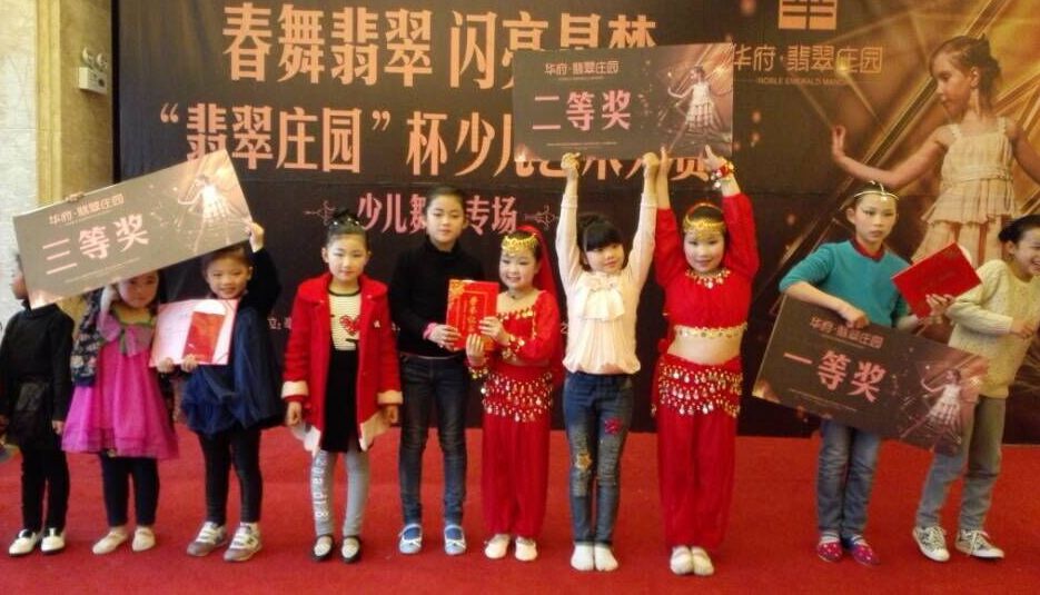 4月19日下午,由亳州華侖集團(tuán)主辦的“青舞翡翠,閃亮星夢”翡翠莊園杯才藝大賽活動在翡翠莊園售樓中心隆重舉行。我校選送了傣族舞蹈《雨中夢》和印度舞蹈《歡樂的跳吧》參加此次少兒才藝大賽。經(jīng)過激烈的角逐,我校葉軍老師輔導(dǎo)的印度舞蹈《歡樂的跳吧》獲得此次才藝大賽之舞蹈大賽的二等獎。