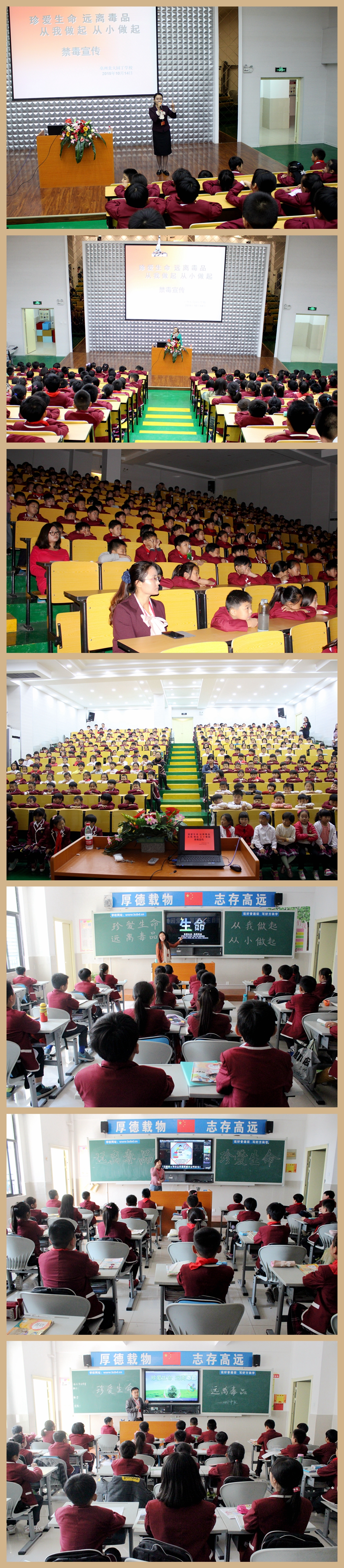 結(jié)合我校實(shí)際,于10月14日、15日,在校多媒體報(bào)告廳分年級觀看了以 “珍愛生命,遠(yuǎn)離毒品,從小做起,從我做起”為主題的宣傳影片,并以班會形式在各班級組織學(xué)生進(jìn)一步學(xué)習(xí)和討論。