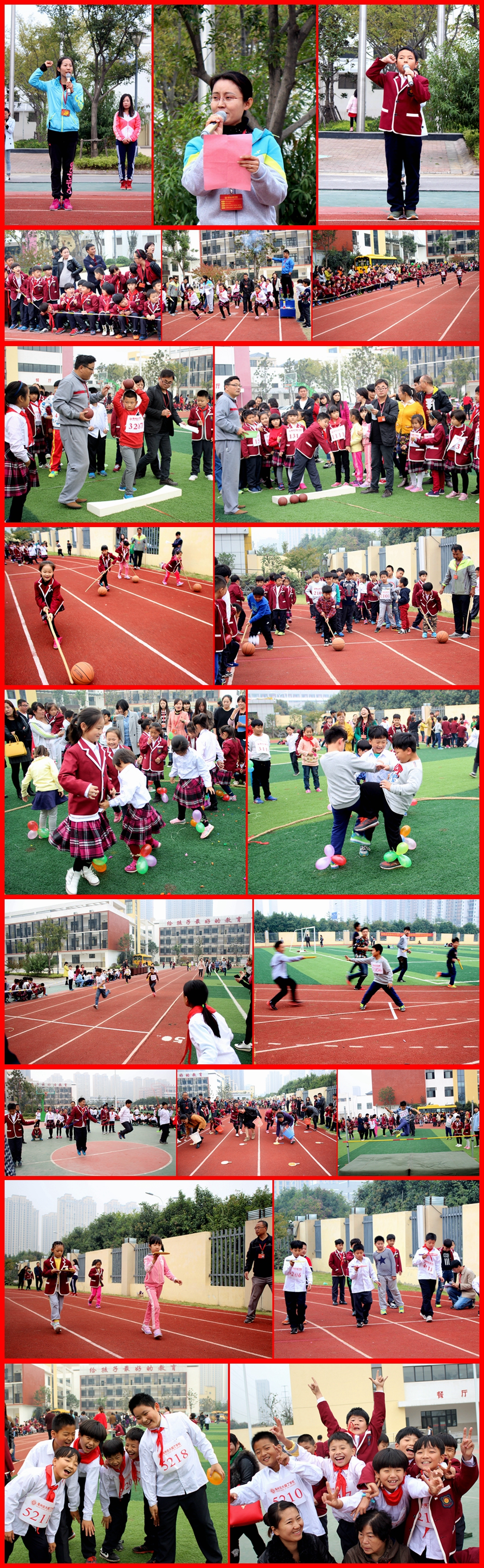 徑賽場(chǎng)地上,發(fā)令槍聲一響,運(yùn)動(dòng)員們猶如離弦之箭一般飛速而出,運(yùn)動(dòng)健兒們激情飛揚(yáng)、奮力拼搏,特別是4*50米的接力賽中,運(yùn)動(dòng)員們配合默契,在拉拉隊(duì)的鼓舞聲中出色地完成了速度與毅力的接力;壘球、實(shí)心球場(chǎng)地上,在空中畫出完美弧形的球體也是力量的象征,運(yùn)動(dòng)員們手持沉重的實(shí)心球,用盡全力舉起揮出,穩(wěn)穩(wěn)落下;跳高場(chǎng)地上,運(yùn)動(dòng)健兒們目光堅(jiān)定,助跑、跨步、起跳,每一次跳躍都體現(xiàn)出自己奮勇拼搏的精神;趣味賽程場(chǎng)地上,踩氣球、趕豬、一分鐘跳繩、托乒乓球跑等等項(xiàng)目中歡笑聲不斷,加油聲、吶喊聲、慶祝聲此起彼伏……運(yùn)動(dòng)健兒們活躍的身影在賽場(chǎng)上形成了一道亮麗的風(fēng)景線,與之呼應(yīng)的是學(xué)生播報(bào)員也在不時(shí)播出獲獎(jiǎng)同學(xué)的佳績,各班級(jí)積極向大會(huì)投稿,為運(yùn)動(dòng)健兒們加油、鼓氣!