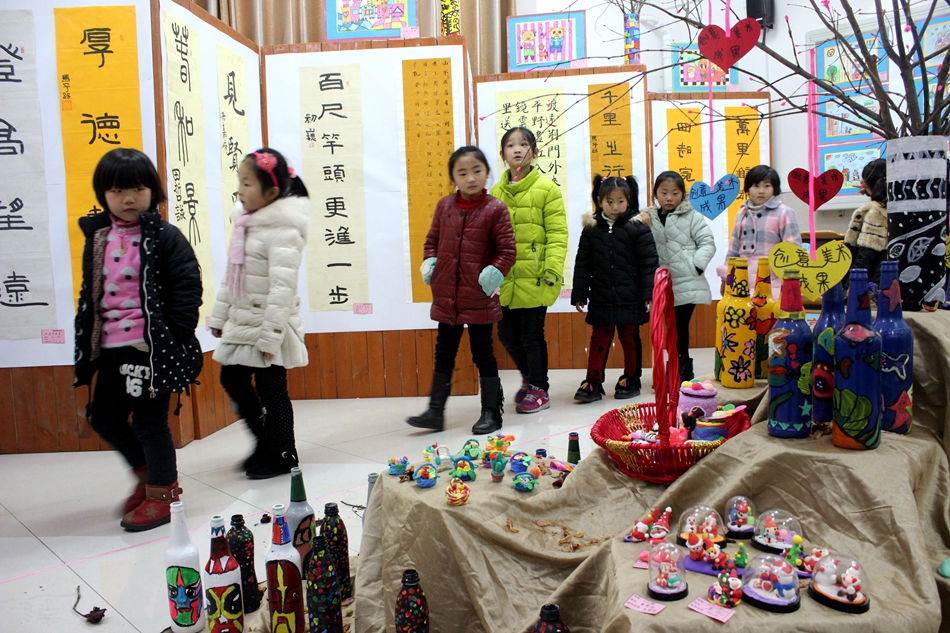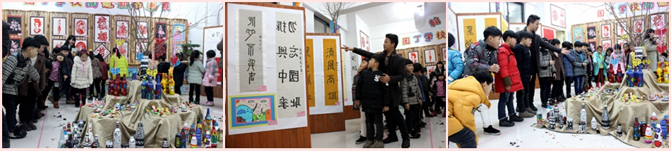 此次迎新書畫展作品形式多樣,但全都是學(xué)生平常的作品。有書法和左右腦書法作品,有學(xué)生繪畫作品,有剪紙作品,有瓶身繪圖和紙碟繪圖作品,還有輕泥土手工DIY作品……書法作品筆力勁挺,學(xué)生們雖小小年紀(jì),作品卻已入木三分,其中六(1)班張惠軒同學(xué)的左右手同時(shí)書更是獲得了第22屆國(guó)際世界兒童畫展的金獎(jiǎng);繪畫作品惟妙惟肖,色彩搭配深淺有度;剪紙作品更是展現(xiàn)了我校對(duì)傳統(tǒng)文化的重視,“?!弊执郝?lián)的設(shè)計(jì)充分體現(xiàn)了新年即將到來(lái)的濃厚氛圍;瓶身繪圖以及紙碟繪圖趣味橫生,學(xué)生們的作品各個(gè)都創(chuàng)意新穎,可以看出我校并不是空談“給孩子最好的教育”,而是付諸于實(shí)打?qū)嵉慕逃ぷ髦?,使孩子的想象力及?chuàng)造力都有了極大的提升和展示其的舞臺(tái);公主、城堡、食物以及帶有圣誕和新年元素的輕泥土手工DIY更是讓人愛(ài)不釋手,原本只是一塊塊毫無(wú)特色的輕泥土,在我校孩子的手中也富有了生命力,仿佛被注入了靈魂一般,有了自己的色彩……這些作品不僅給師生及家長(zhǎng)們帶來(lái)了美的享受,還充分展示了我校近30種興趣班教學(xué)的豐碩成果。