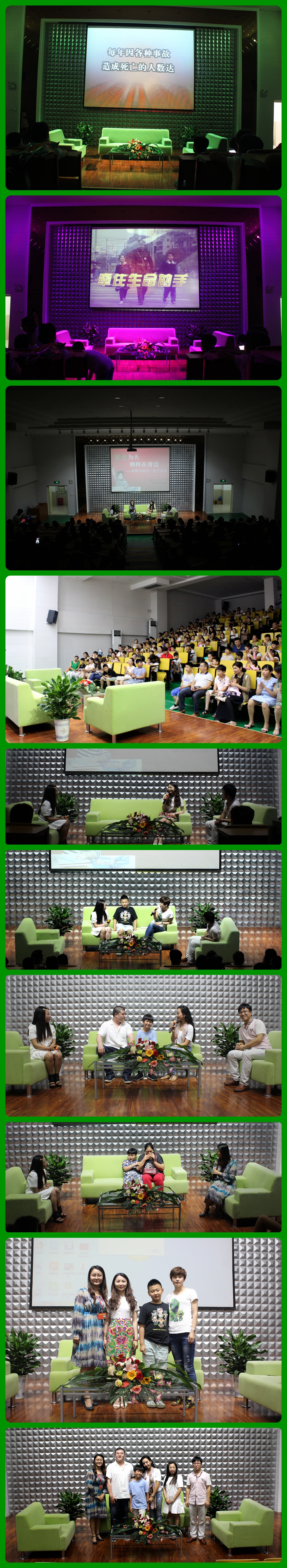 最先展現(xiàn)給家長(zhǎng)和孩子們的是一段扣人心弦的安全短片——《牽住孩子的手》,短片中用大量詳實(shí)的記錄和數(shù)字給在座的每一位上了一堂生動(dòng)的安全教育會(huì)。隨著教務(wù)處雷輝龍主任一曲《安全為天》的傾情演繹,訪談節(jié)目正式開(kāi)始,和雷主任一同主持的還有張盼老師。