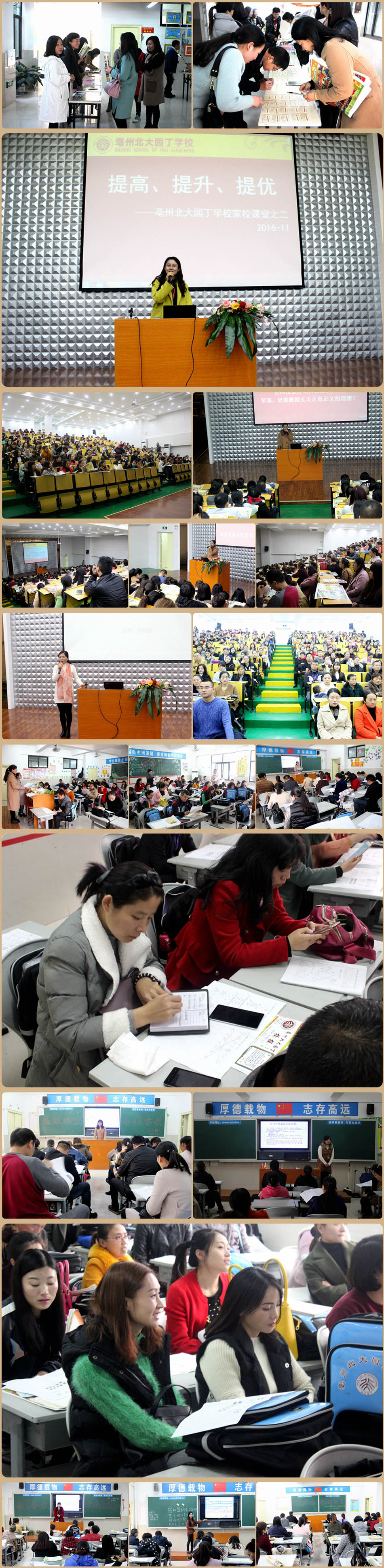 為進一步加強學校與家長之間的聯(lián)系,讓家長了解“我們”,傾聽“我們”,指導家長如何教育孩子,讓孩子健康快樂成長,11月14、15日,在我校報告廳袁芳校長作了題為《提高、提升、提優(yōu)》的兩場精彩報告,近800名家長參加了培訓會。