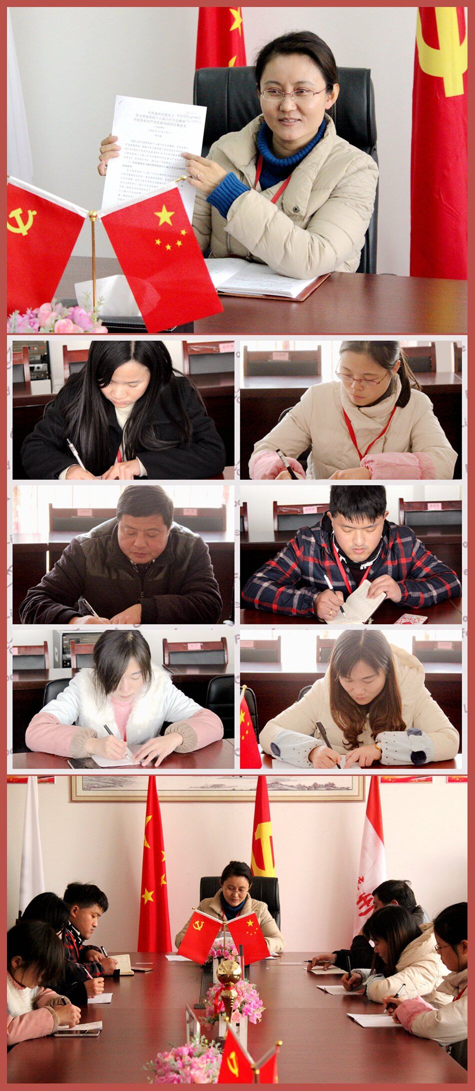 2016年12月15日,北大園丁學校全體黨員在袁芳書記的帶領下一起學習了省委、市委下發(fā)的關于認真探討學習“講看齊見行動”的文件精神。研討會上,各位黨員認真聆聽袁芳書記的發(fā)言,并積極參與討論發(fā)表自己的看法。研討會上大家一致認為作為黨員教師,在思想和行動上一定要和學校保持一致,爭做表率型教師;始終牢記“忠誠堅如磐石,看齊才能堅定不移”的思想,立足于本職,努力做好教學教學工作,做一個觀念更新、永遠保鮮型教師。