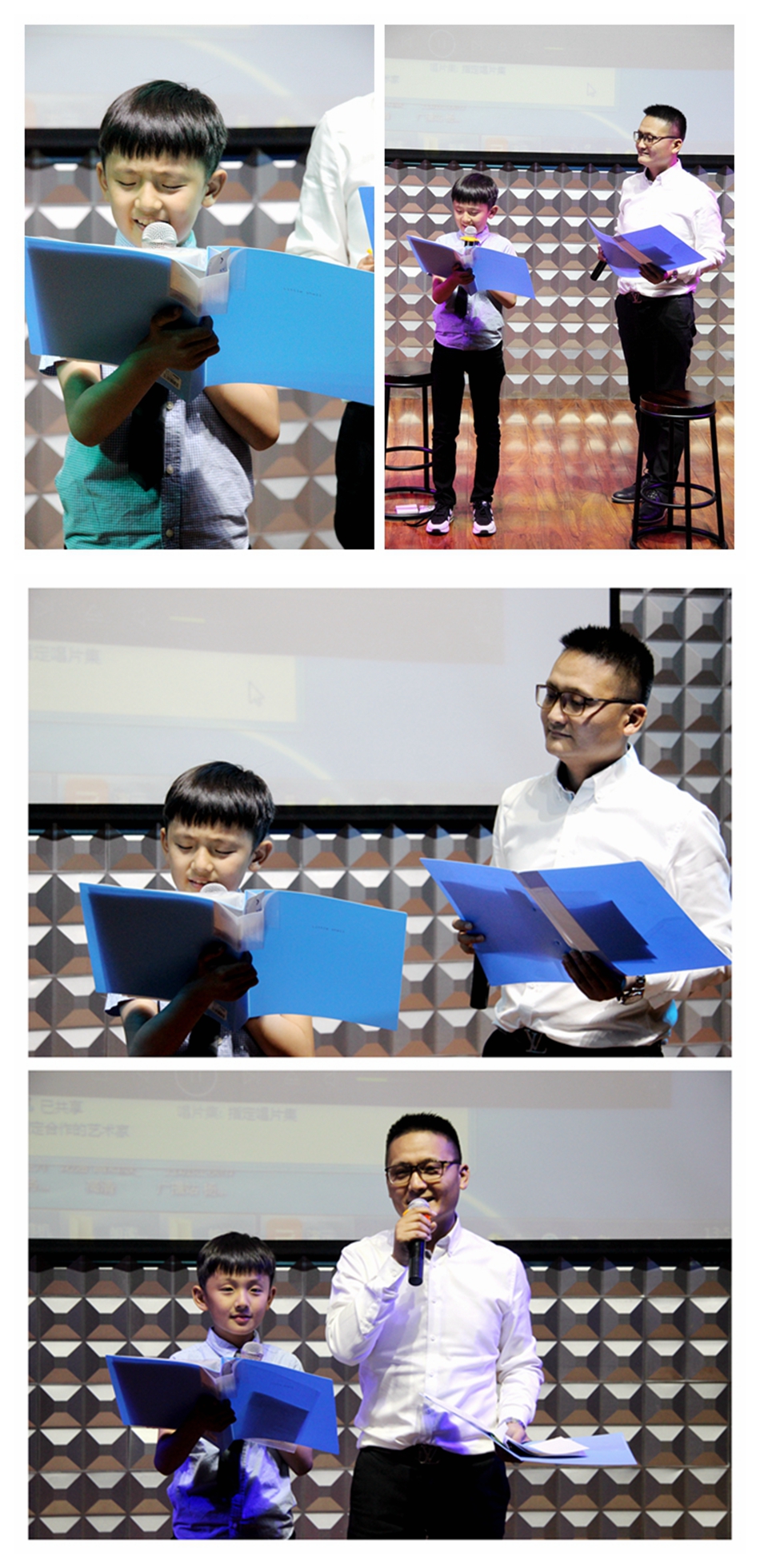 朗讀者四(2)班萬(wàn)國(guó)文與爸爸, 是活動(dòng)中唯一的一對(duì)“父子兵”。他們朗誦的原創(chuàng)作品《父親的臂膀,生命的脊梁》講述了三代人的感人故事。父子天衣無(wú)縫的配合,深情款款的朗讀把整個(gè)活動(dòng)推向了高潮。