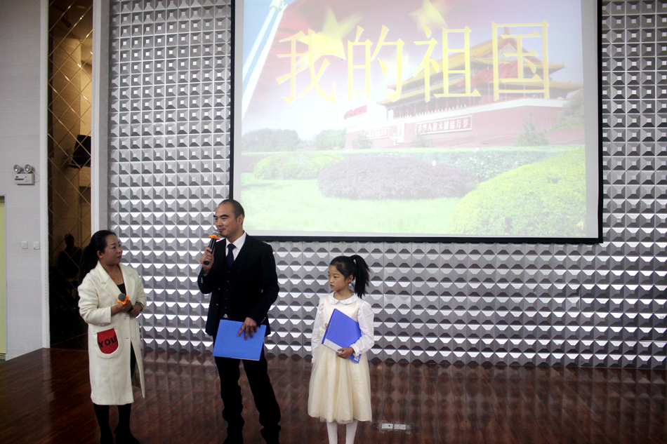 “國(guó)是家的國(guó),家是國(guó)的家,有了強(qiáng)大的國(guó),才有溫暖的家”我是一名少先隊(duì)員,好好學(xué)習(xí)就是熱愛(ài)祖國(guó);我是一名律師,愛(ài)崗敬業(yè)就是愛(ài)國(guó);四4班賈西子和她的爸爸以最深情父女用朗誦,詮釋了對(duì)祖國(guó)的熱愛(ài)。