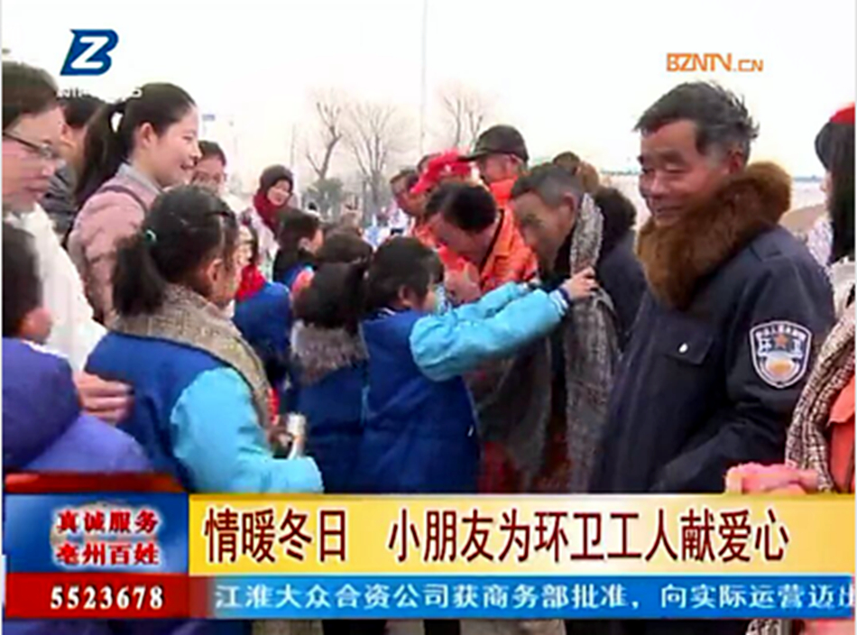 12月23日,我校二年級學(xué)生代表來到市政公園參加“靠近你 溫暖我”給環(huán)衛(wèi)工人送溫暖活動。學(xué)生用平時積攢下的零花錢買好了保溫杯、圍巾、手套等保暖物品,親手送給工作在環(huán)衛(wèi)一線的爺爺奶奶們,并向環(huán)衛(wèi)工人宣誓,從我做起、從身邊做起、做到不亂丟垃圾,愛護(hù)環(huán)境,做一名講文明的小學(xué)生。