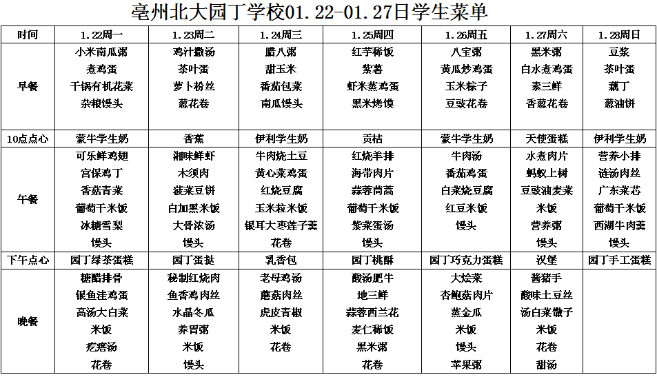 01.22-01.27日學(xué)生菜單